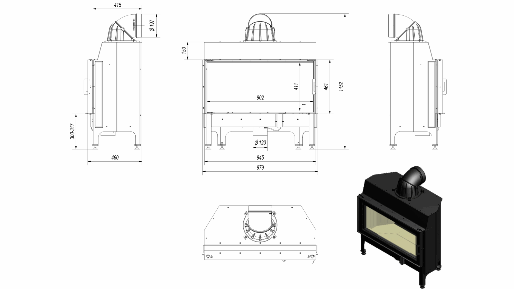 The diameter of the exhaust outlet (mm) 200